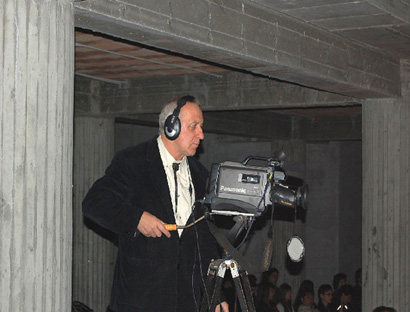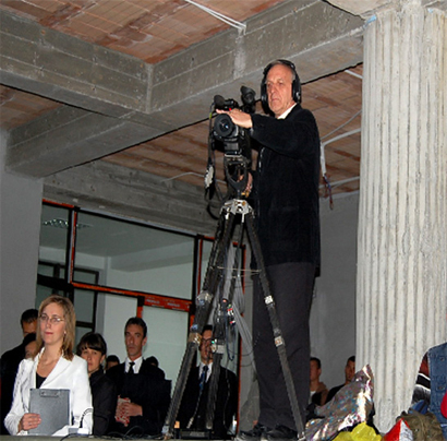 Dr. Nagy Attila kamerával a Babeș - Bolyai Tudományegyetem sepsiszentgyörgyi kihelyezett tagozatának 2009-es megnyítóján, az új Campus aulájában